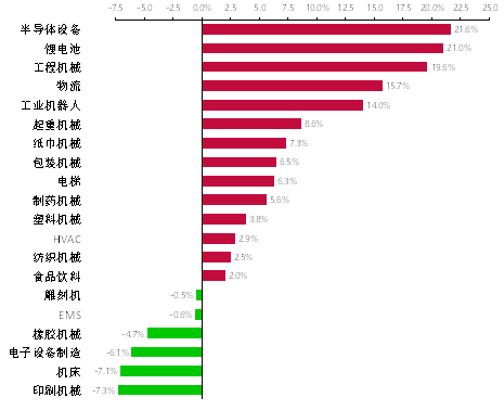 机床、电子、EMS、印刷机械、工业机器人自动化需求增长率下滑幅度最大