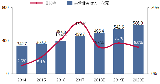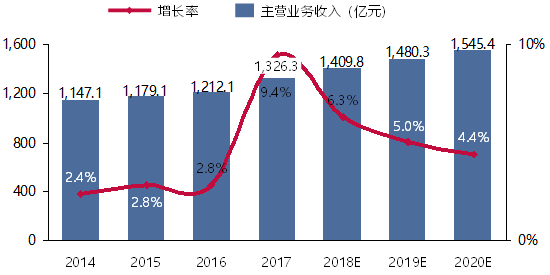 2) 水泥,在国家环保政策趋严、错峰停窑时间的拉长和范围的扩大形势下,从2017年开始,水泥的价格得到提升,远高于2014至2016年的最高水平,再加上基建等行业对水泥需求的稳定增长,水泥整体将保持10%以内平稳增长。