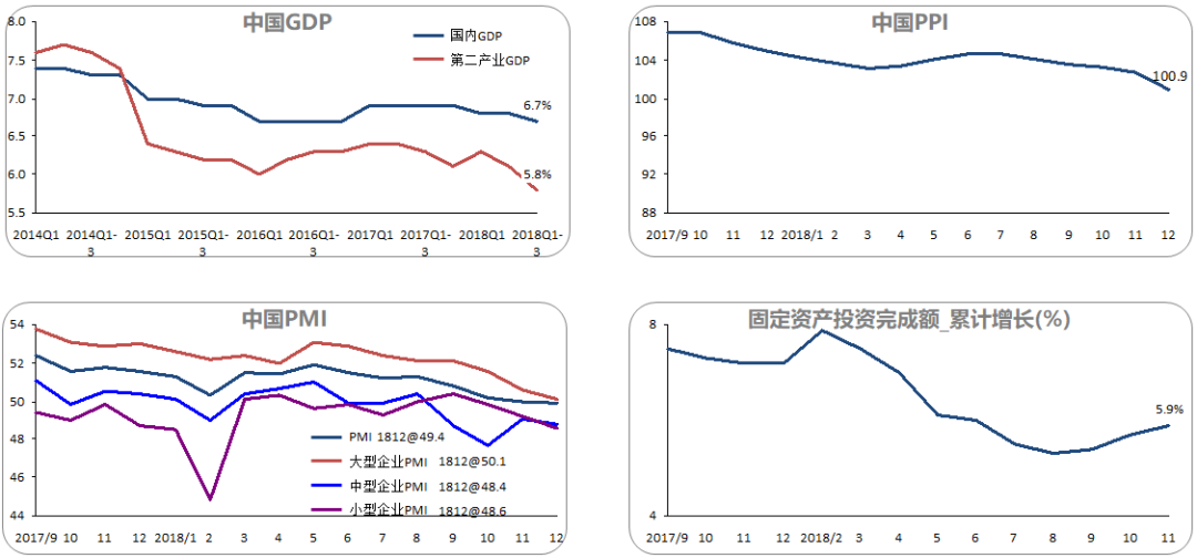 2018年GDP持续下滑,其中第二产业(加工制造业)GDP首次跌破6%,制造业经济下行压力大