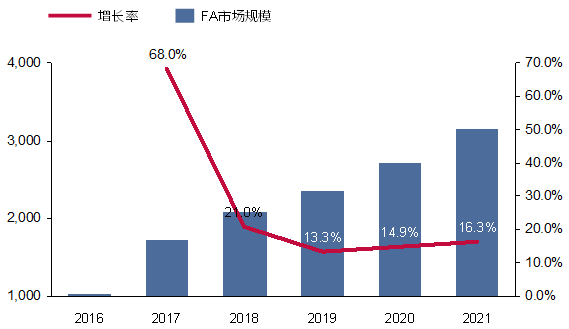 2019~2020年锂电池行业FA市场将保持稳定速度增长。动力电池而言,经过行业洗牌后无法恢复到2017年的火爆行情,但受双积分政策刺激,未来两年将保持20%左右的增长率稳定增长;消费电池而言,未来两年3C行业增长情况不乐观,因此消费电池行业增长情况相应地也不容乐观。